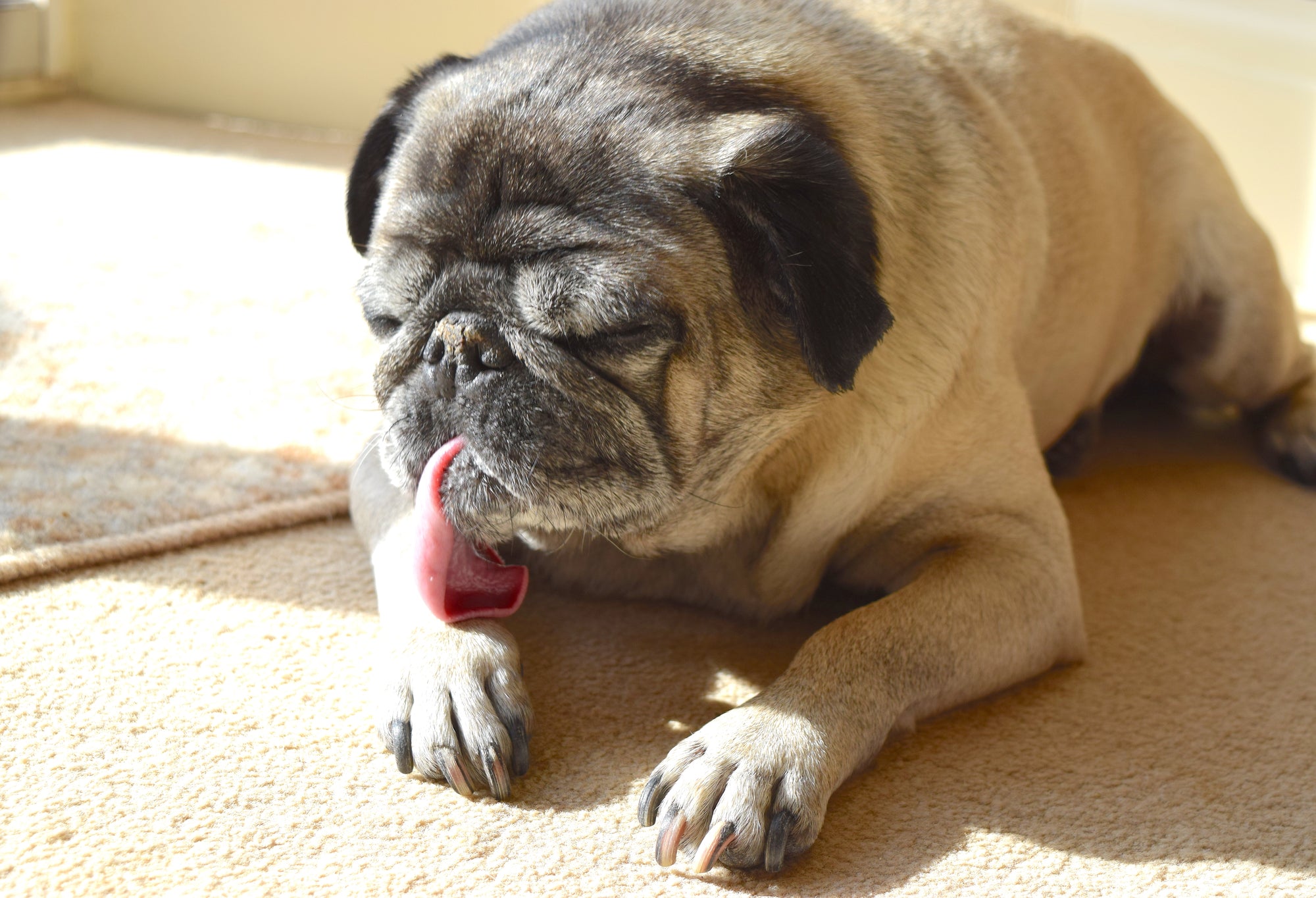 - Licking paws or scratching often